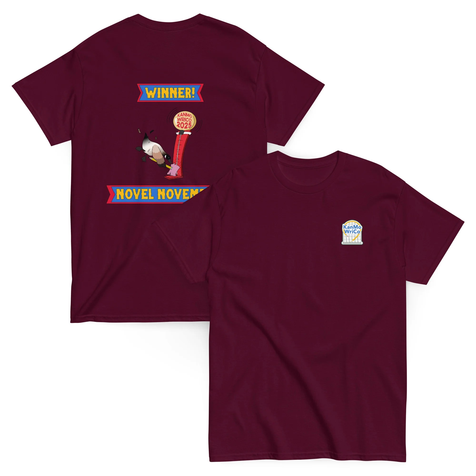 Want a shirt to commemorate winning the Novel November challenge this year? Wishing for more KanMoWriCo swag? Always wanted to be a walking advertisement for the group? Well, we have great news: We’ve got merch!